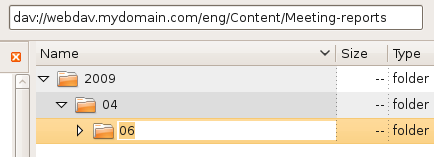 Navigate to the place where you usually store meeting reports (Content/Meeting-reports/ here). For easier retrieval of information, we could think of a tree-based tagging storage of the type year/month/day, which we create right away, still from Nautilus :
